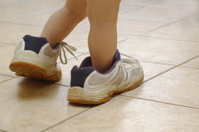 When the child first begins to walk, shoes are not necessary indoors. Allowing the youngster to go barefoot or to wear just socks helps the foot to grow normally and to develop its musculature and strength, as well as the grasping action of toes. Of course, when walking outside or on rough surfaces, babies' feet should be protected in lightweight, flexible footwear made of natural materials.